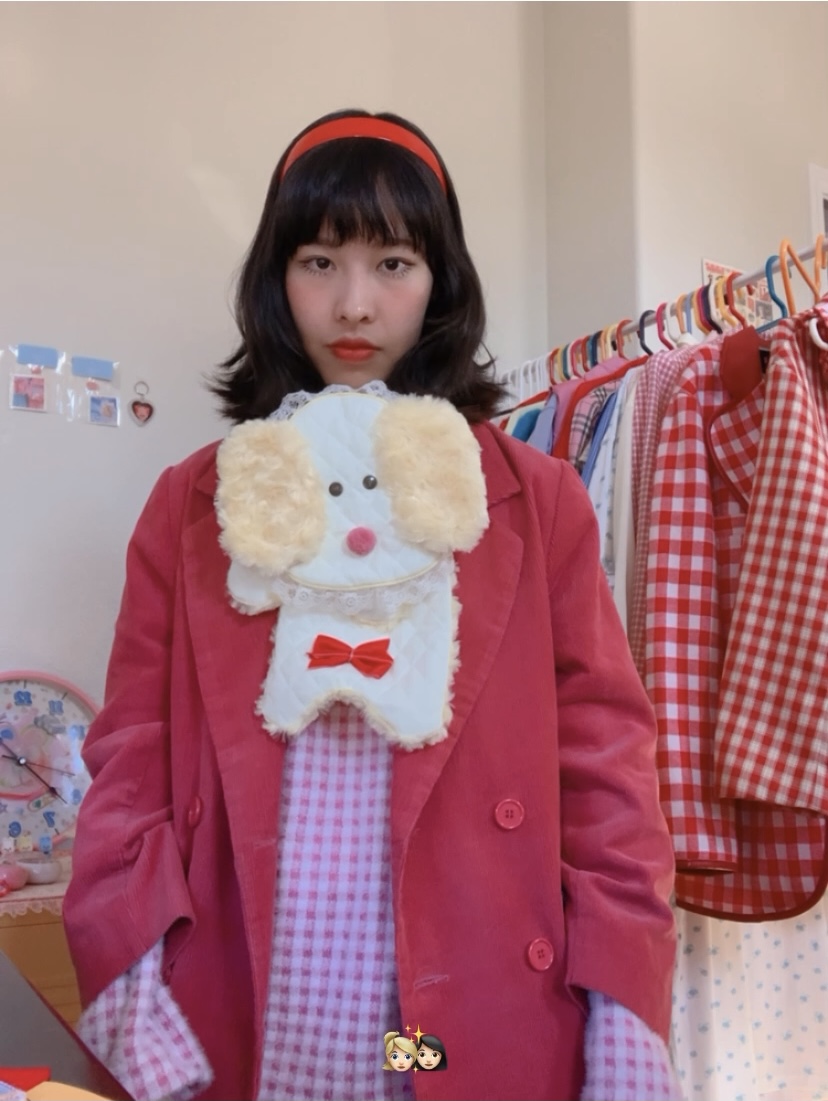 A Clippord that looks like he's made of buttercream frosting, and he wears a doily around his neck! He has a red bow for a tail.